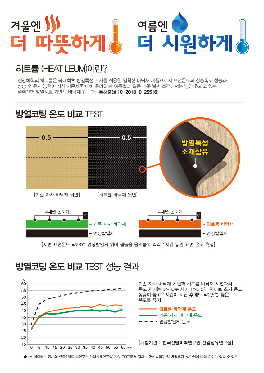 국내 최초 방열특성 소재를 적용한 열확산 바닥재 제품으로서,