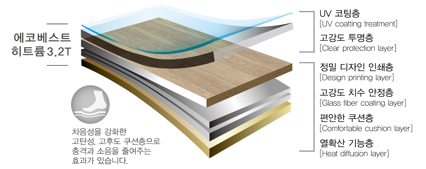 UV코팅 공법 처리로 표면 오염 및 마모에 강해